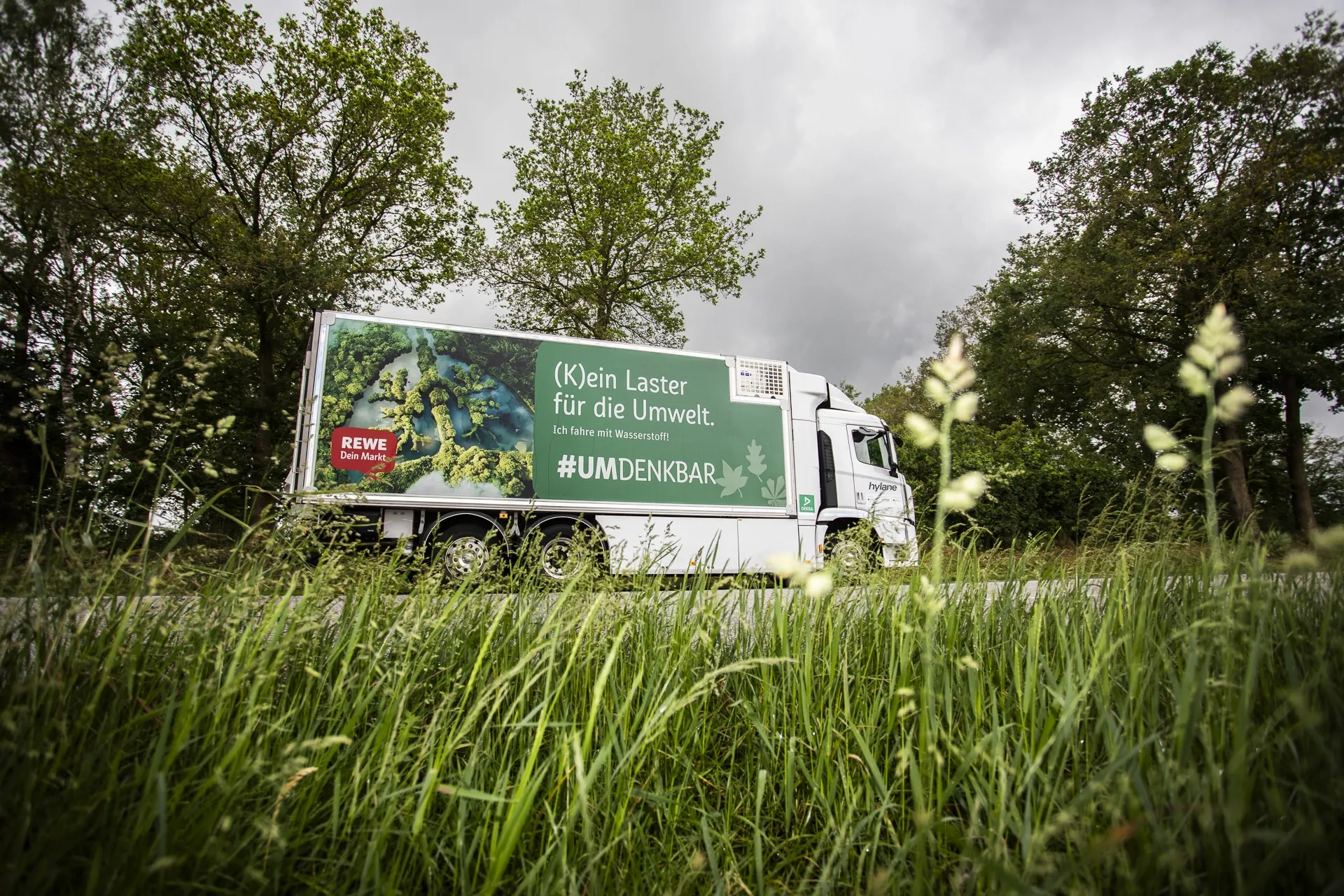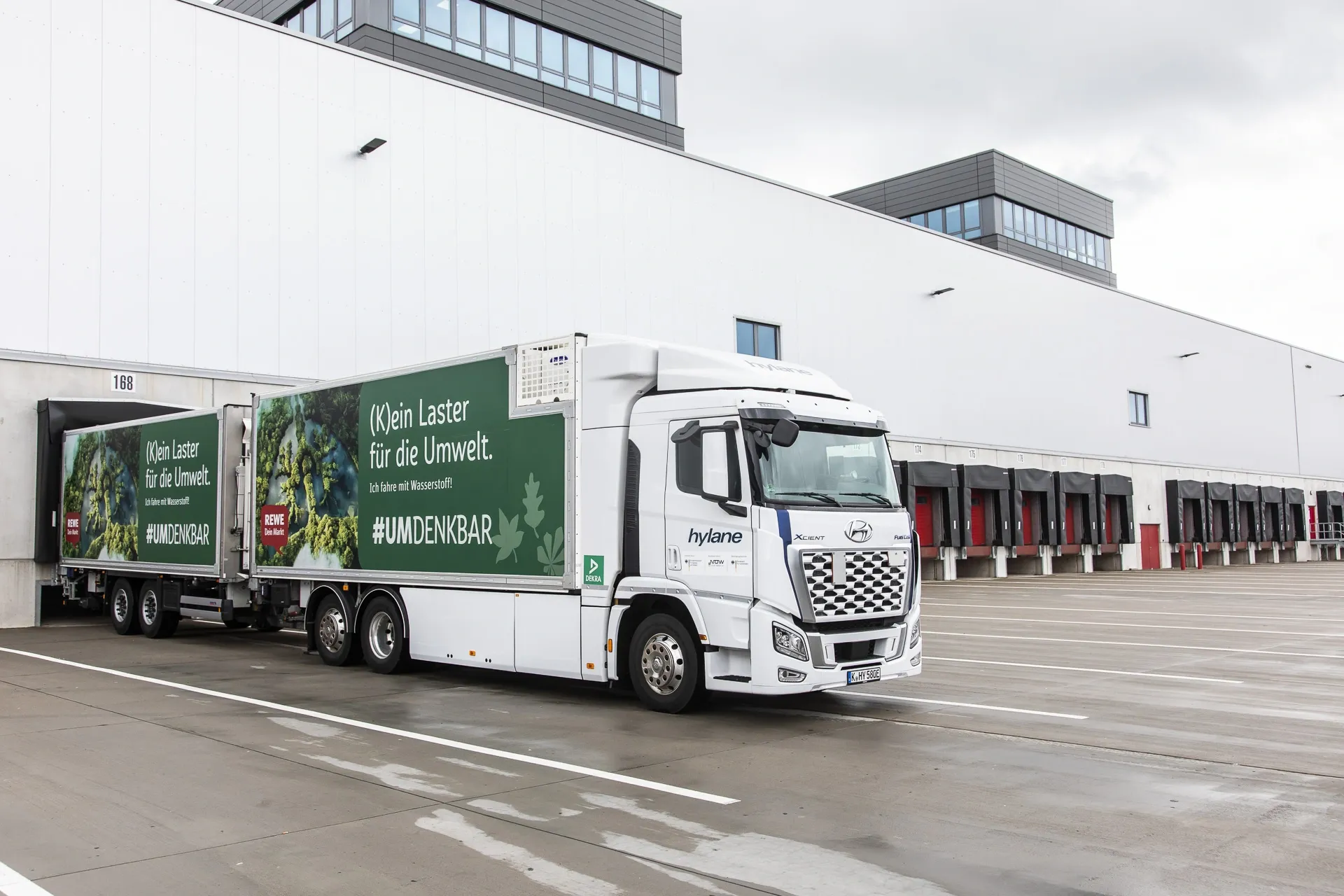 Seit September letzten Jahres ist der Lebensmittelhändler mit einem Wasserstoff-Lkw unterwegs und beliefert damit seine Märkte in Hamburg und Umgebung klimafreundlich. Durch das Mietmodell von hylane ist es REWE möglich, einfach und risikoarm Erfahrungen mit der neuen Technik zu sammeln. Punkten konnte der Lkw bisher vor allem mit einer hohen Betriebseffizienz und geringen Betankungszeiten bei hoher Kostentransparenz im Einsatz. Im Gegensatz zu einem reinen Batterie-Fahrzeug ist außerdem die Flexibilität deutlich höher.