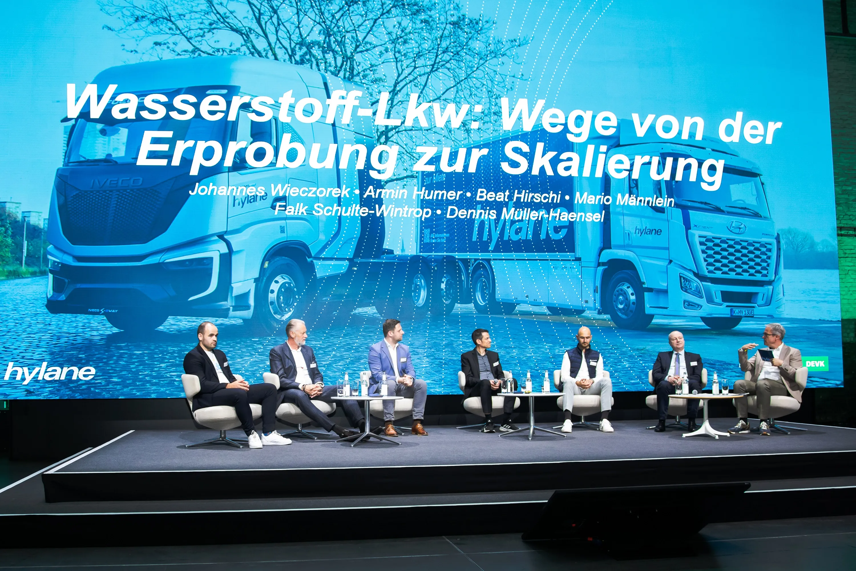 Eröffnet wurde die Veranstaltung von hylane-Geschäftsführung Bernd Zens und Sara Schiffer. Bernd Zens, Mitglied des Vorstands DEVK Versicherungen und Geschäftsführer hylane: „Die Dekarbonisierung des Straßengüterverkehrs ist eine Aufgabe, die wir nur gemeinschaftlich angehen können. Umso wichtiger ist es, jetzt in einen engen Austausch zu kommen. Dass so viele Teilnehmer hier sind, die schon fundierte Erfahrungen mit Wasserstoff-Lkw haben, ermöglicht eine Diskussion auf Basis von Echtdaten.“ Sara Schiffer, Geschäftsführerin hylane: „In Deutschland gibt es durch ein ambitioniertes und verantwortungsbewusstes Handeln vieler Akteure eine gute Basis für den Einsatz von Wasserstoff in der Mobilität. Diesen Schwung wollen wir kanalisieren und den begonnenen Prozess weiter beschleunigen.“
