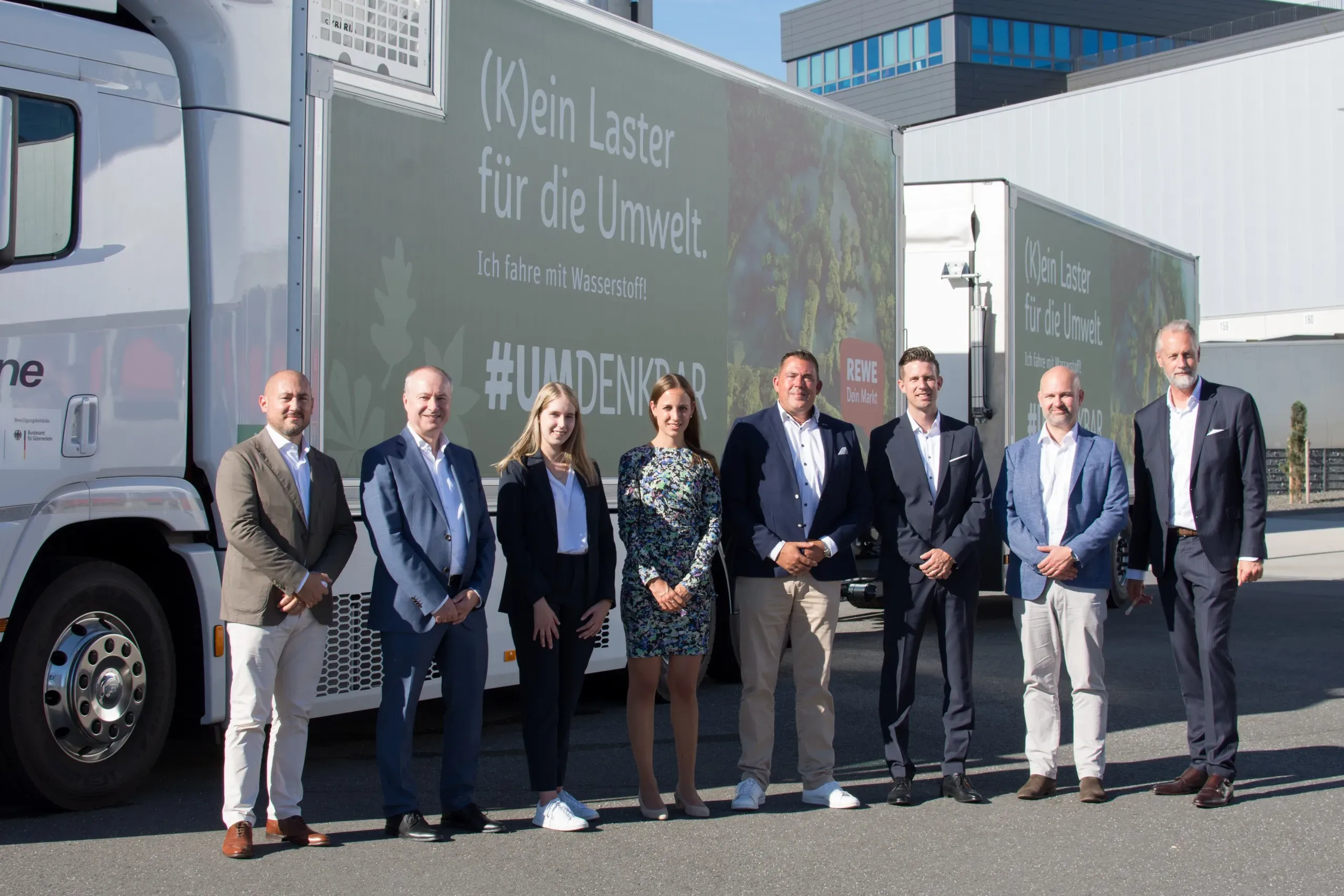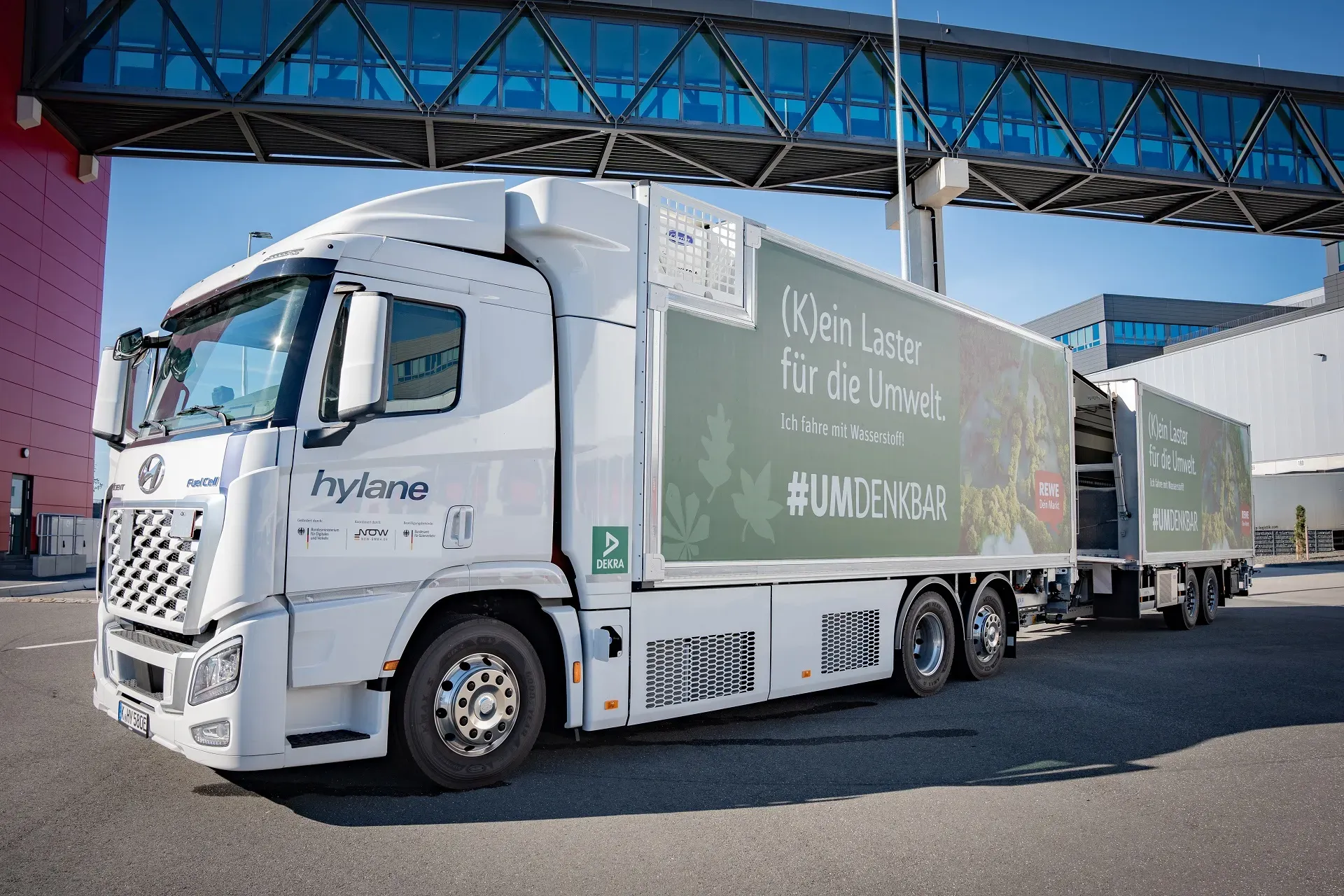 Das Hyundai-Fahrzeug vom Typ „XCIENT Fuel Cell“ verfügt über eine Reichweite von rund 400 Kilometern. Der Wasserstoff wird in sieben Behältern gespeichert, die je nach Temperatur in einer Spanne von acht bis 20 Minuten vollständig betankt werden können. Schmitz Cargobull hat das Fahrzeug ausgestattet mit einem Spezialaufbau mit Kühlung und Ladebordwand: entsprechend den alltäglichen Anforderungen und ganz nach den Bedürfnissen von REWE. Um die Versorgung des Fahrzeuges mit Wasserstoff sicherzustellen, hat hylane eine Kooperation mit H2 MOBILITY aufgebaut. Das Unternehmen betreibt bundesweit Wasserstoff-Tankstellen. Vor Übergabe an den Kunden wurde das Fahrzeug von der DEKRA Automobil GmbH technisch auf Herz und Nieren geprüft. Die Sachverständigen werden für das Fahrzeug auch Hauptuntersuchung und Sicherheitsprüfung durchführen.