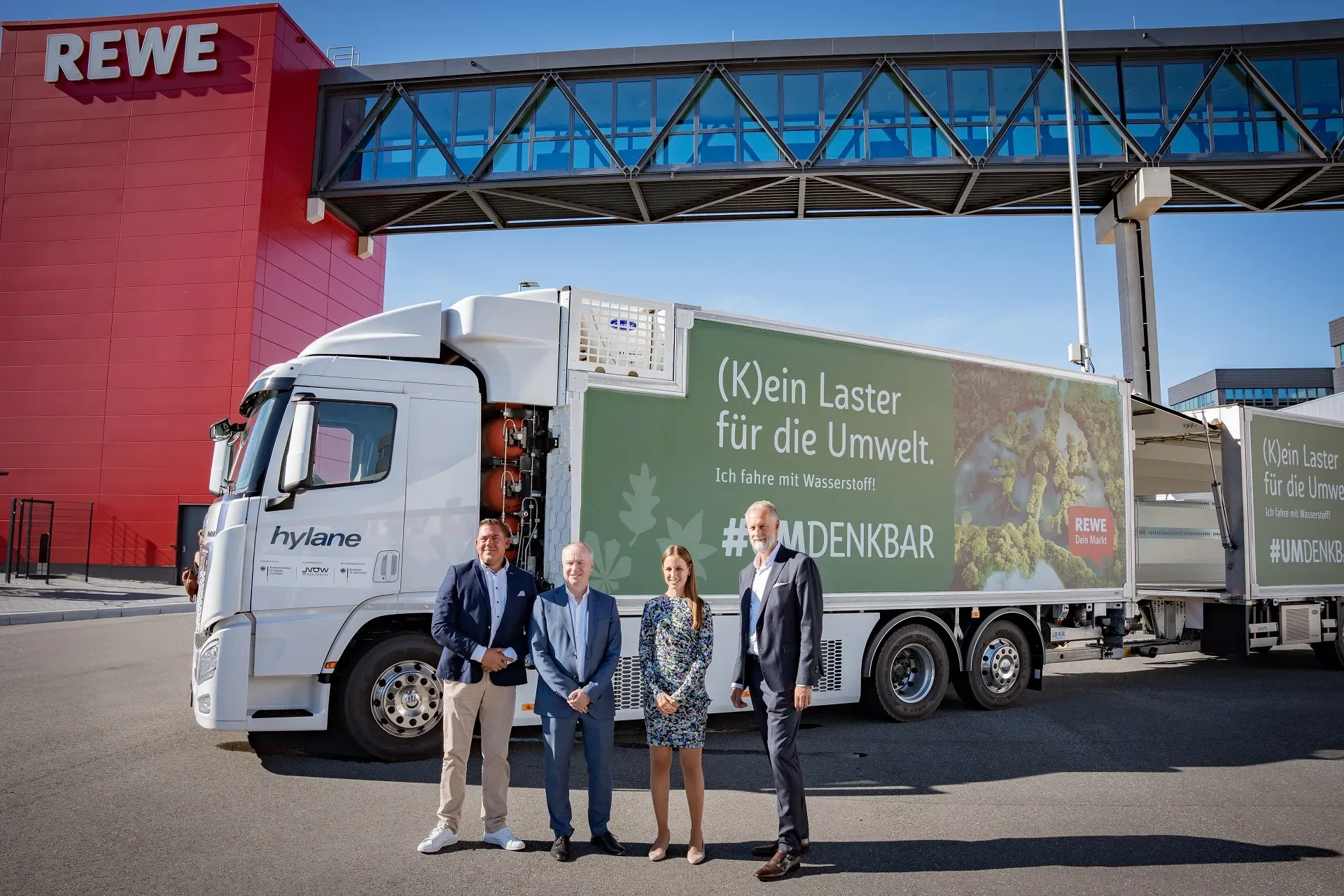 Sara Schiffer, Geschäftsführerin der hylane: „REWE macht unsere Versorgung mit Lebensmitteln in Deutschland immer nachhaltiger. Wir sind stolz mit unseren Wasserstoff-Lkw dazu beitragen zu dürfen, dass die REWE Märkte im Norden ab jetzt klimafreundlich beliefert werden können. Insbesondere im Norden unseres Landes haben wir die Möglichkeit lokal produzierten und klimaneutralen Wasserstoff einzusetzen.“